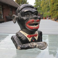 Sparbössa i form av en tunna i trä. Inköpt 1954 på Djursvikutställningen söder om Kalmar. Av foton framgår skador på den öppningsbara gaveln, orsakade när tunnan öppnats. Längd 12,5 cm, höjd 11 cm, tunnans diameter 9 cm. Namnet Leif är inbränt på ena foten. Tyvärr saknas det lilla hänglåset som fanns med från början. Betalning inom 5 dagar efter auktions slut. Avhämtning och samfrakt är möjligt i tillämpliga fall. Säljer större delen av hela mitt bohag p.g.a utlandsflytt.