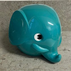 Stor sittande spargris i rosa keramik. Liten spricka i glasyren vid höger öra, se bild. I övrigt väldigt fint skick.