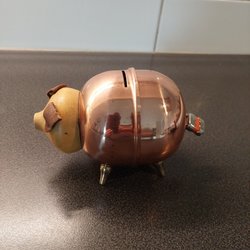 Vintage Spargris i form av tunna som det står Siljansnäs på med ett litet hänglås.