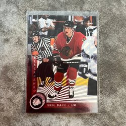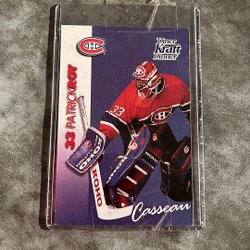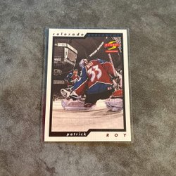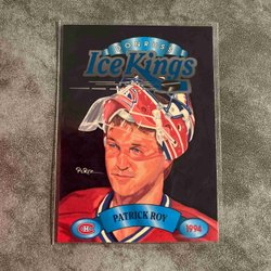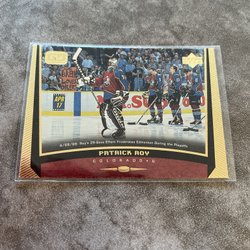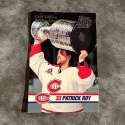 Samlarobjekt med Patrick Roy tema. Innehåller information om hans karriär och hockeykort.