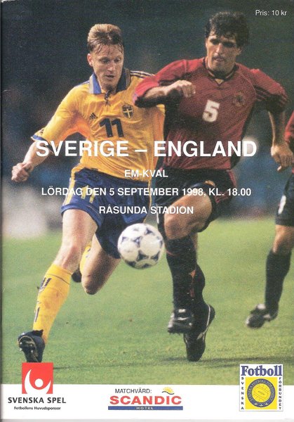 Matchprogram - SWEDEN 1998 v England