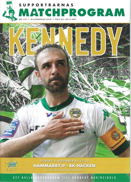 Matchprogram från Allsvenskan 2018, en hyllning till Kennedy Bakircioglu.