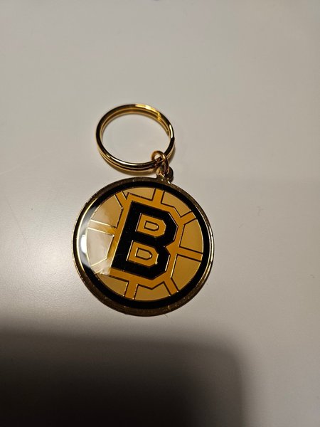 En nyckelring med Boston Bruins logga.