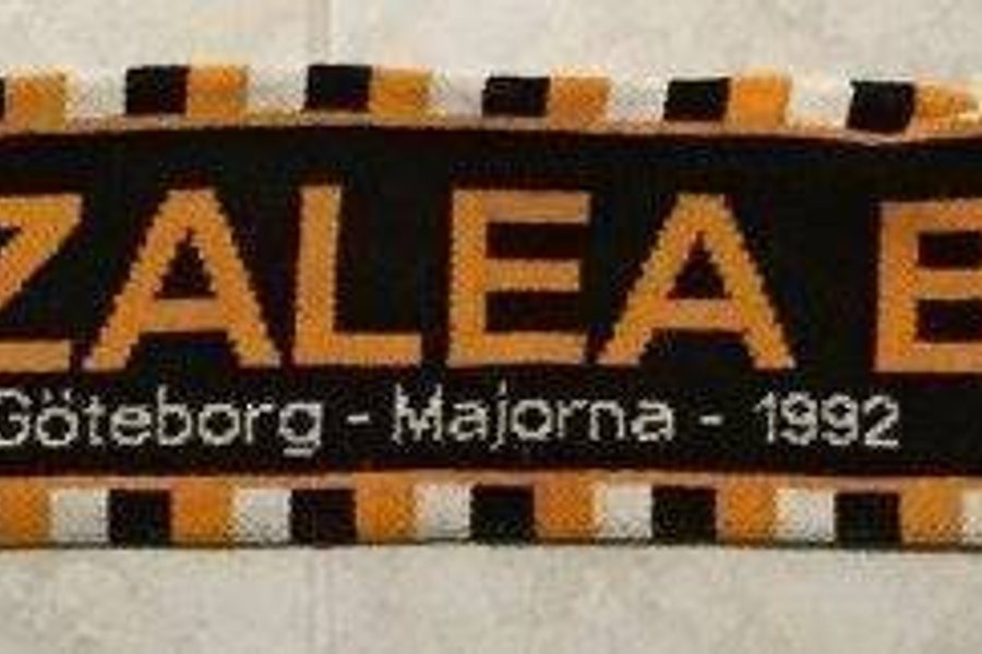 Halsduk från Azalea BK, Göteborg - Majorna - 1992. Svart med orange detaljer och fransar.