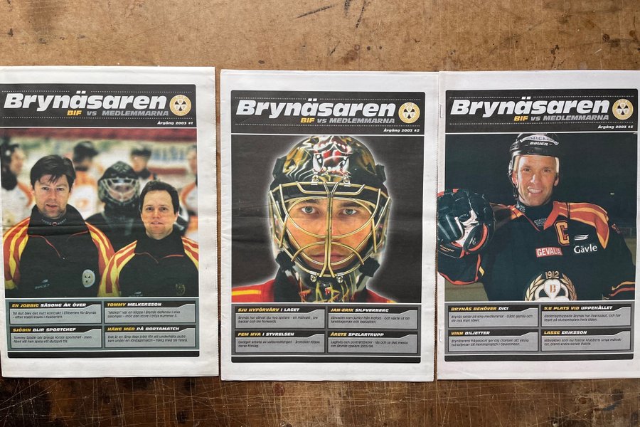 Tre tidningar från Brynäs IF, årgång 2003. Innehåller artiklar om spelare, nyförvärv, matcher och annat relaterat till Brynäs ishockey.