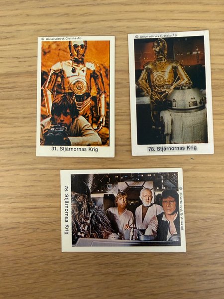 Tre Star Wars samlarbilder från Universaltryck Grafiska AB. Inkluderar nummer 31 och 78.