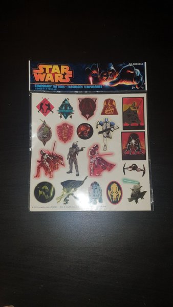 Ett ark med Star Wars temporära tatueringar. Perfekt för Star Wars-fantasten.