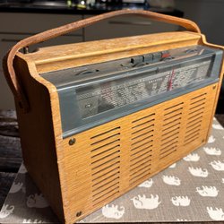 En klassisk Philips radio. Perfekt för samlaren eller den som vill ha en retro detalj i hemmet. Radion har en vacker design med trädetaljer och en tidstypisk front.
