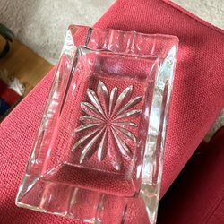 Klassiskt askfat i glas.Mycket vackert askfat troligen kristall i mycket gott begagnat skick inga nagg eller skador ej heller repor.Höjd ca 5,6cm och diameter 15cm.Osignerat.