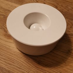 ”Kulan” askkopp, designad av Gunnar Larsson för Gustavsbergs Porslinsfabrik på 1970-talet. Finns en defekt på locket (se bild 5).