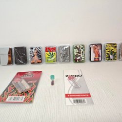 7 stycken Cigarett tillbehör:2 tändare, stift, askfat, askkopp, etui, nyckelring