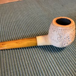 En väl inrökt pipa som jag inte gjort något åt,tänker att eventuell köpare kan sånt bättre än jag. Märket är "Dollar".