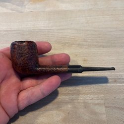 Äldre indisk pipa av keramik och metall.