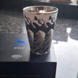 Äggformad burk med motiv av Lasse Åberg. Texten "Dont be chicken" står skrivet på burken.