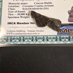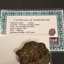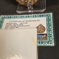 Autentisk NWA 4482 meteorit, klassificerad som Pallasit, PMG. Denna meteorit hittades i Algeriet, Afrika, år 2006. Specimenets vikt är 1,6 gram.
