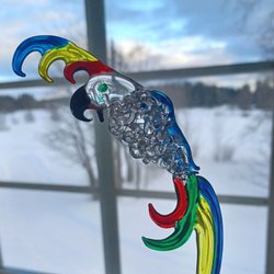 Den ena är gjord av mässing och emaljerad i fina färger.