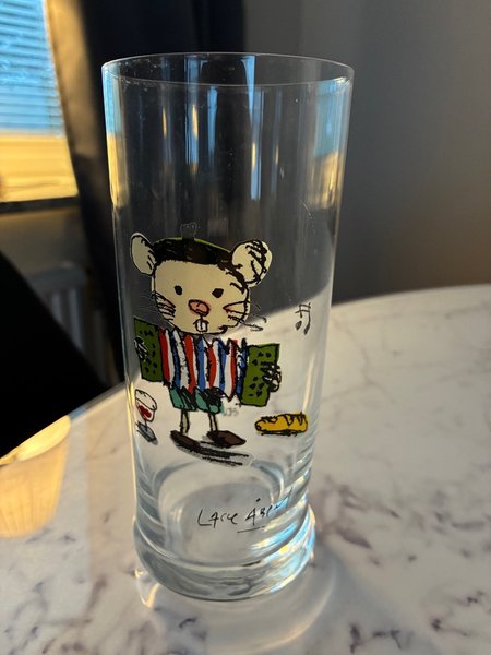 Glas med Lasse Åberg motiv.