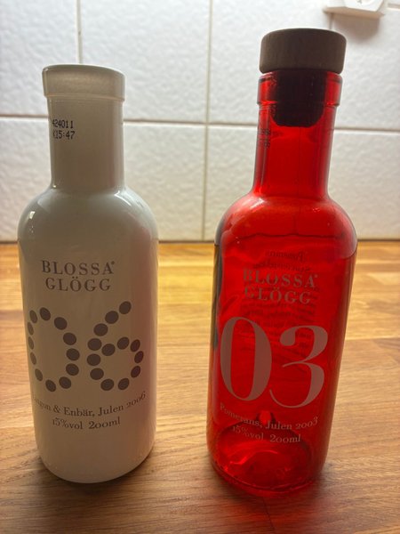 Blossa. Glöggflaskor. 2006 och 2003.
