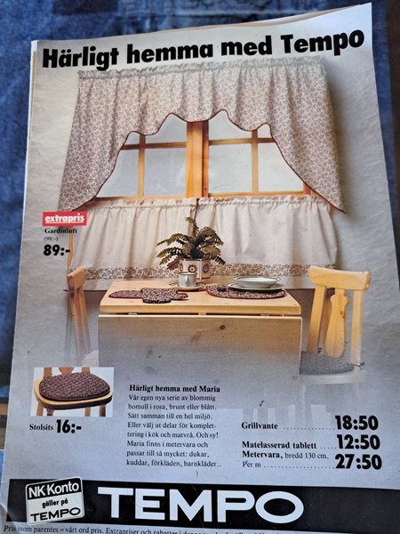 Tdning Gardinkappa i blommigt bomullstyg från Tempo. Mönstret "Maria" finns i rosa, brunt eller blått. Passar utmärkt för att skapa en enhetlig miljö i kök och matvrå. Tyget kan även användas till dukar, kuddar, förkläden och barnkläder.