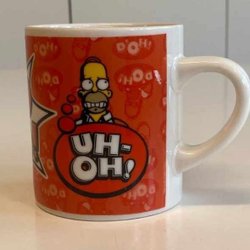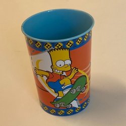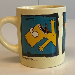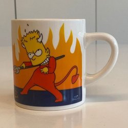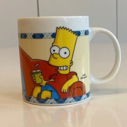 Mugg med motiv från The Simpsons, Bart Simpsons. Märkt med Matt Groening och 2005 Fox. I gott använt skick. Ingga naggade kanter. Finns små gula tunna streck i glasyren i botten, samt i insidan, se bilder. Rymd: 4 dl.