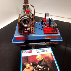 Wilesco D6 ångmaskin med tillbehör. Inkluderar originalkartong, tratt, tång och instruktioner.