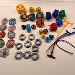 Beyblade från ca -90 talet. Tror de heter metal fusion. Allt på bilderna ingår men vet ej om något saknas så kolla noga på bilderna innan köp Tack!