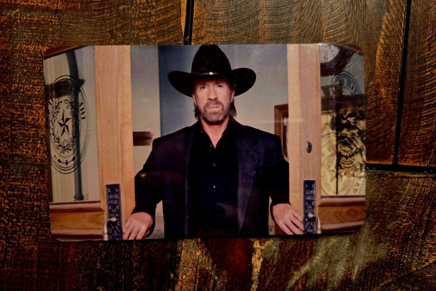 Magnet med bild av Chuck Norris i cowboyhatt och svart kavaj. Från tv serien walker texas rangers. Skickar med postnord frimärken (22kr) eller hämtas på plats.
