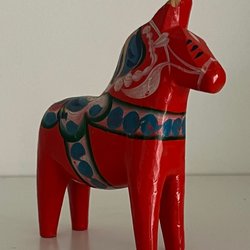 Klassisk dalahäst från Nils Olsson Hemslöjd i Nusnäs. Handmålad i traditionella färger och mönster. Perfekt som en dekorativ detalj i hemmet eller som en souvenir från Sverige. Se bilder för detaljer.