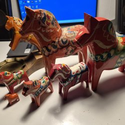 7 st små dalahästar.