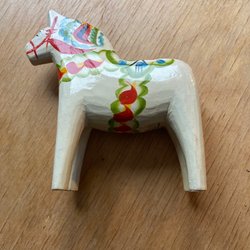 Dalahäst - Träfigur - Vit - Höjd ca 7,5 cm - längd ca 7 cm
