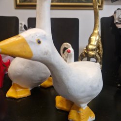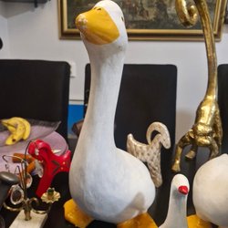 Vit dalahäst. Höjden är ca 24 cm. Jag är osäker på om den är gjord i trä eller annat material.