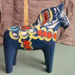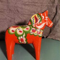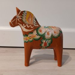 En klassisk dalahäst i trä. Perfekt som dekoration eller samlarobjekt. Höjden är cirka 13 cm.