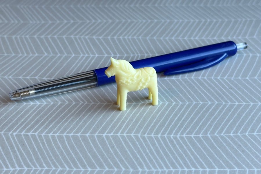 En 3D printat gul Dalahäst i miniformat. Perfekt för att dekorera hemmet eller som en unik present.