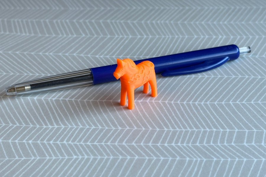 En 3D printat orange Dalahäst i miniformat. Perfekt för att dekorera hemmet eller som en unik present. Passar extra bra till Halloween med sin pumpa-liknande färg.