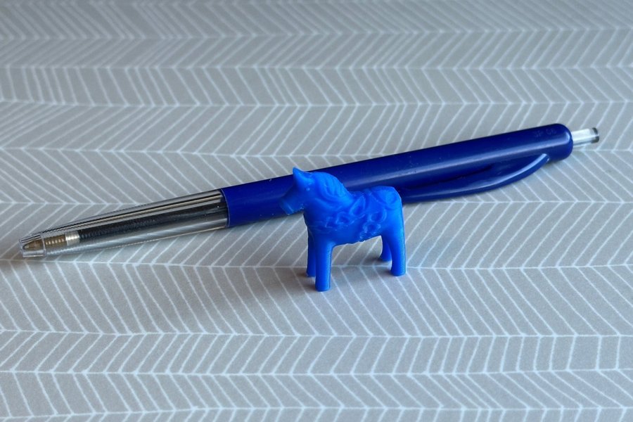En 3D printad blå Dalahäst i miniformat. Perfekt för att dekorera hemmet eller som en unik present.