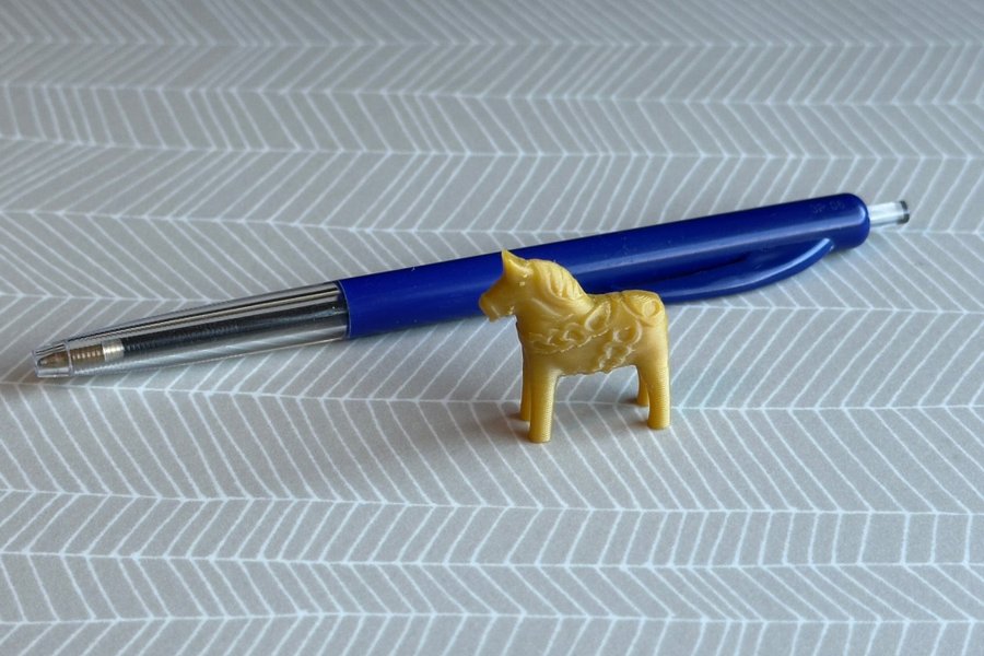 En 3D printad mörkgul Dalahäst i miniformat. Perfekt för att dekorera hemmet eller som en unik present.