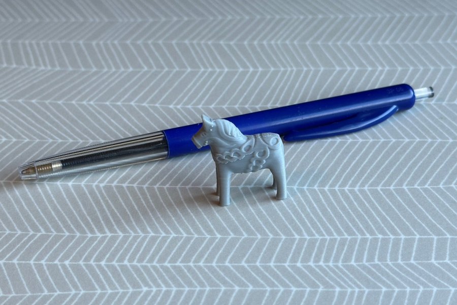 En 3D printad grå Dalahäst i miniformat. Perfekt för att dekorera hemmet eller som en unik present.