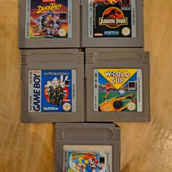 Säljer ett parti med sex Game Boy Advance och Game Boy Color spel i originalkartong. Inkluderar Jurassic Park 3 Park Builder, Wario Land 4, Super Mario Advance 4 Super Mario Bros 3, Shadowgate Classic, Mr Nutz och Mario Kart Super Circuit.