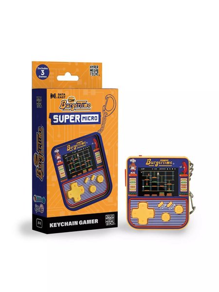 Retro Gaming just got Micro-sized with the Super Micro BurgerTime Keychain Gamer from HyperMegaTech! Small enough to fit onyour keys and go anywhere but large enough to be playable. Features three great Data East games - BurgerTime, Karate Champ and Side Pocket. The 2 RGB screen allows maximum playability, along with a volume control for just the right amount of sound makes this more than a novelty. Requires 3x AAA batteries (not included)