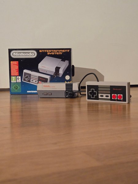 Nintendo Classic Mini NES med en handkontroll och 30 förinstallerade spel. Originalförpackning med original kablar och emballage.