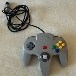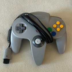 Handkontroll till Nintendo 64. Grå färg med de klassiska knapparna och styrspaken.