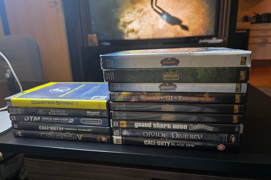 Mixed collection of PC games. Includes titles such as World of Warcraft, Counter-Strike 1, Grand Theft Auto: San Andreas, Call of Duty, and Civilization.