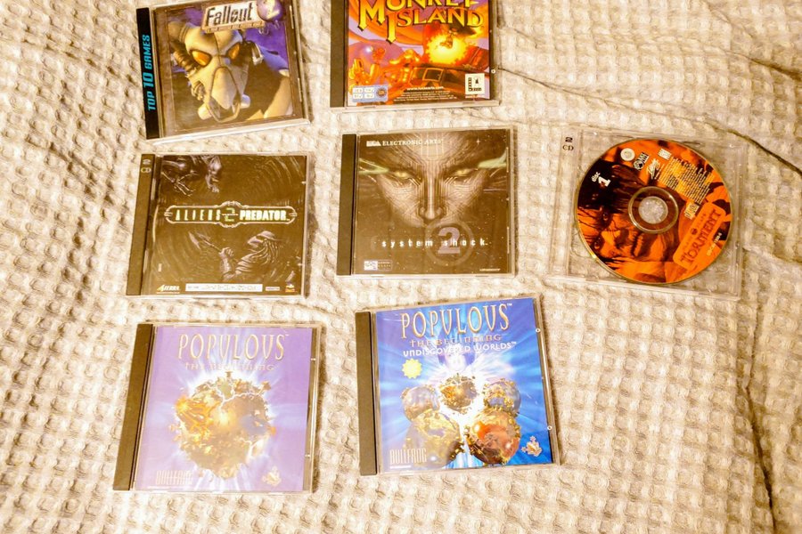 Säljer ett paket med sju klassiska PC-spel. Innehåller Fallout 2, The Curse of Monkey Island, Aliens vs Predator, System Shock 2, Planescape Torment, Populous The Beginning och Populous Undiscovered Worlds.