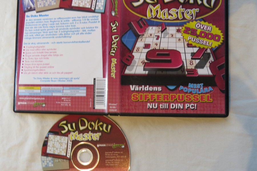 Su Doku Master är den senaste versionen av sifferpusslet som har blivit omåttligt populärt världen över. Reglerna är enkla – siffrorna 1-9 får endast förekomma en gång i varje rad, kolumn och 3 x 3-rutor. Pusslet är löst när det inte finns några tomma rutor kvar. Du kan också spela genom att använda symboler och brickor för nya utmaningar. Varje spel har 3 svårighetsgrader – lätt, mellan och svår, vilket ger användare i alla åldrar och på alla nivåer många timmars utmanande underhållning! Det är skoj, utmanande och starkt beroendeframkallande! Innehåller 3 svårighetsgrader, möjlighet att lösa med siffror eller symboler, spara och fortsätta lösa senare, ångra senaste draget eller börja om, Su Doku tips och tricks, tävla mot klockan, skapa egna pussel, tillgång till fler pussel online, spellösningsfunktion, och möjlighet att lösa på datorn eller skriva ut och lösa på papper! Systemkrav: Windows 98/ME/2000/XP, Pentium 500, 15 MB hårddiskutrymme, CD-ROM-enhet, 128 MB RAM, 16-bitars ljudkort.