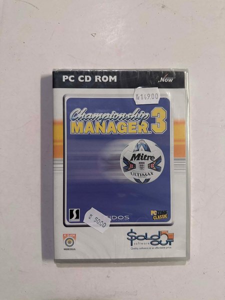 Championship Manager 3 för PC CD-ROM. Spelet är för Windows 95/98 och Me.