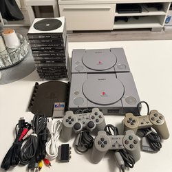 Klassisk Sony Playstation konsol. Krånglar lite när man stänger locket. Man får lirka lite med öppna-knappen innan den stannar nere.