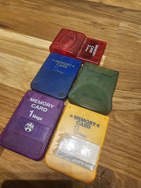 Parti med minneskort till Playstation. Innehåller 1 st 2 Mega minneskort, samt 4 st 1 Mega minneskort.