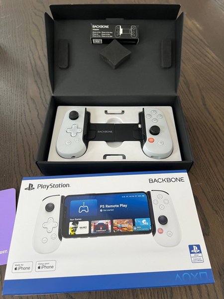 Backbone One för iPhone, PlayStation Edition. Adaptrar för telefon 13 Pro, 13 Pro Max, 14, 14 Plus, 14 Pro och 14 Pro Max ingår.