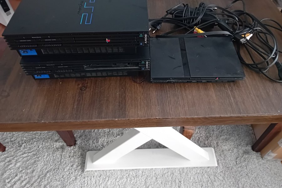Här säljes ett antal PlayStation 2 konsoler.