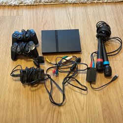 Komplett Playstation 2 i originalförpackning.
